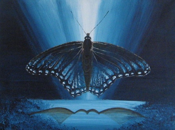Blauwe vlinder.