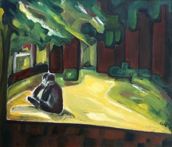 bankje Vlieland olie op doek