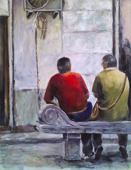 'They talk about truth' - een groot figuratief doek; * Gratis kunst / nog beschikbaar