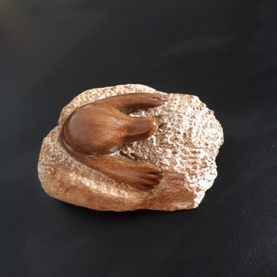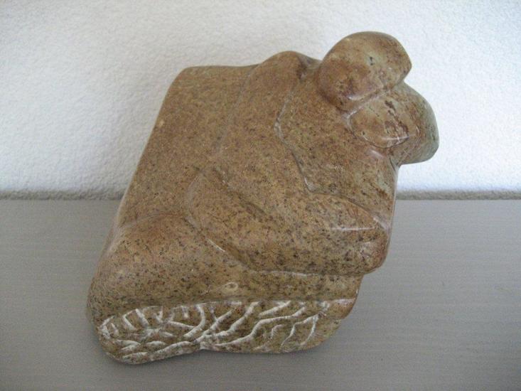 Twee jonge vogels op metalen pen en stenen voet. — €70,00