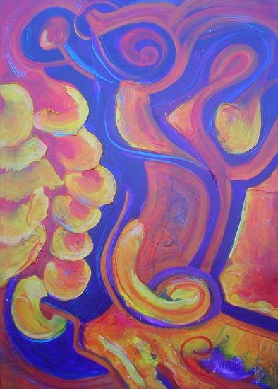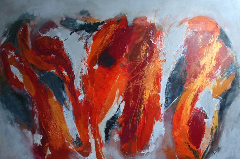 'Abstract landschap met ovale schijven' - groot schilderij; niet meer beschikbaar; Fons Heijnsbroek