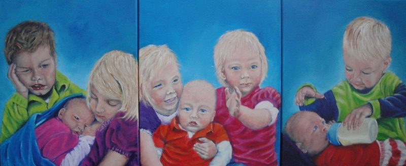 In opdracht van grootouders gemaakt. Hun 8 kleinkinderen verdeeld over 3 schilderijen (per gezin)