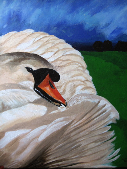 Acrylverf op papier. "Een vink op het water"