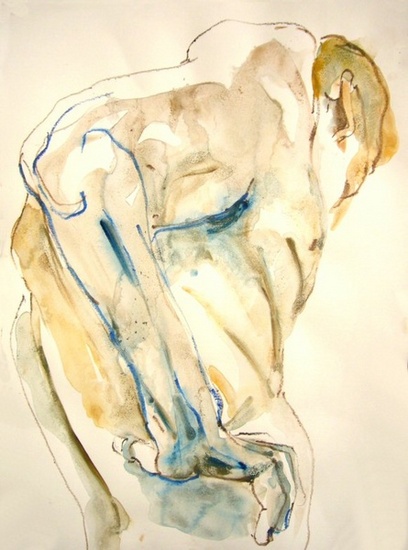 Aquarel liggend naakt.