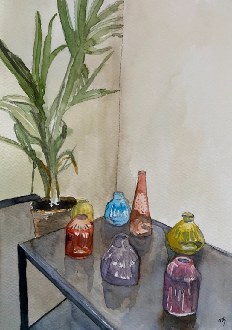 Stilleven met rieten vaas, tinnen kan, bijbel en hortensia
