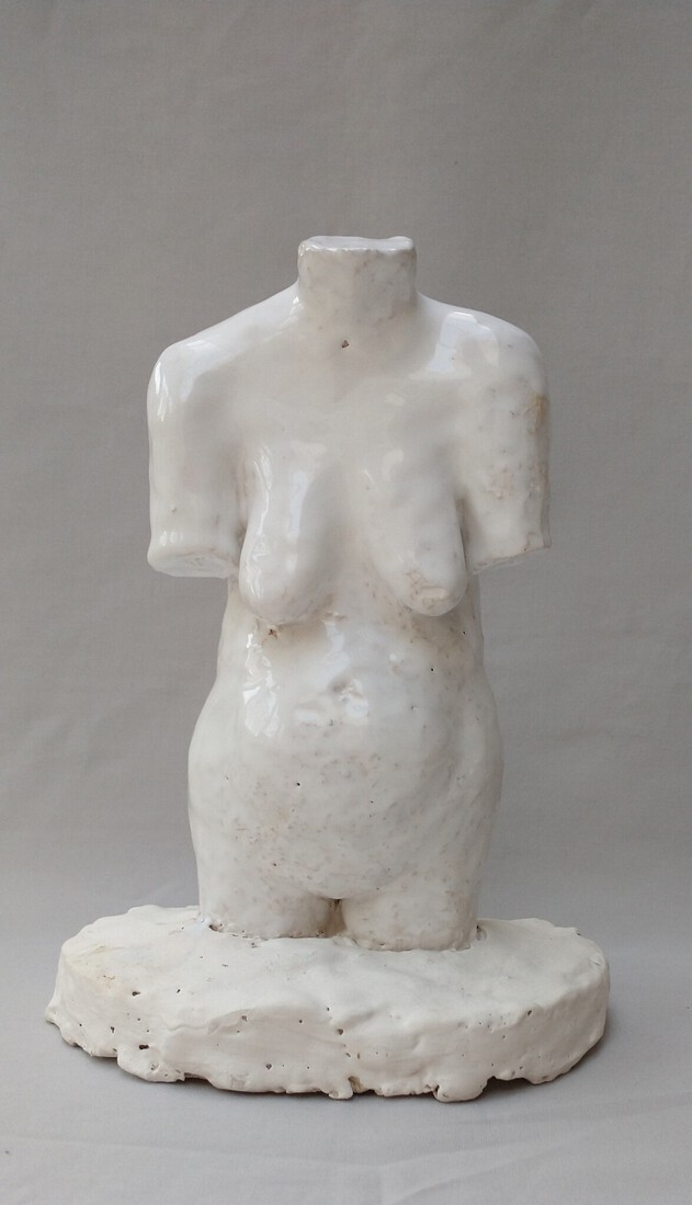 oude dame op voetstuk