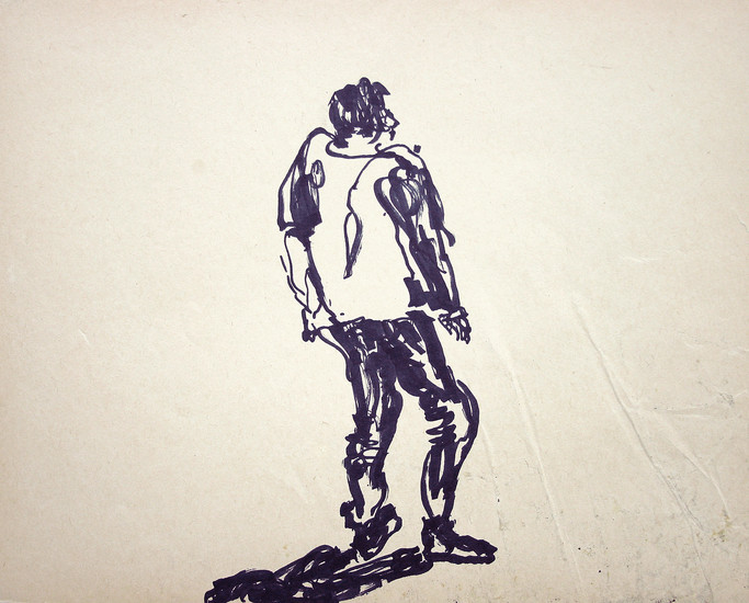 VROUW MET PARASOL - zwart wit strand tekening, te koop — €150,00