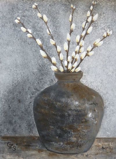 vaas met katjestakken