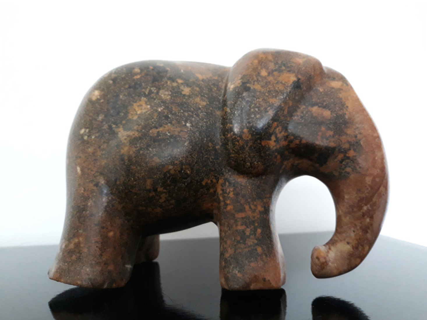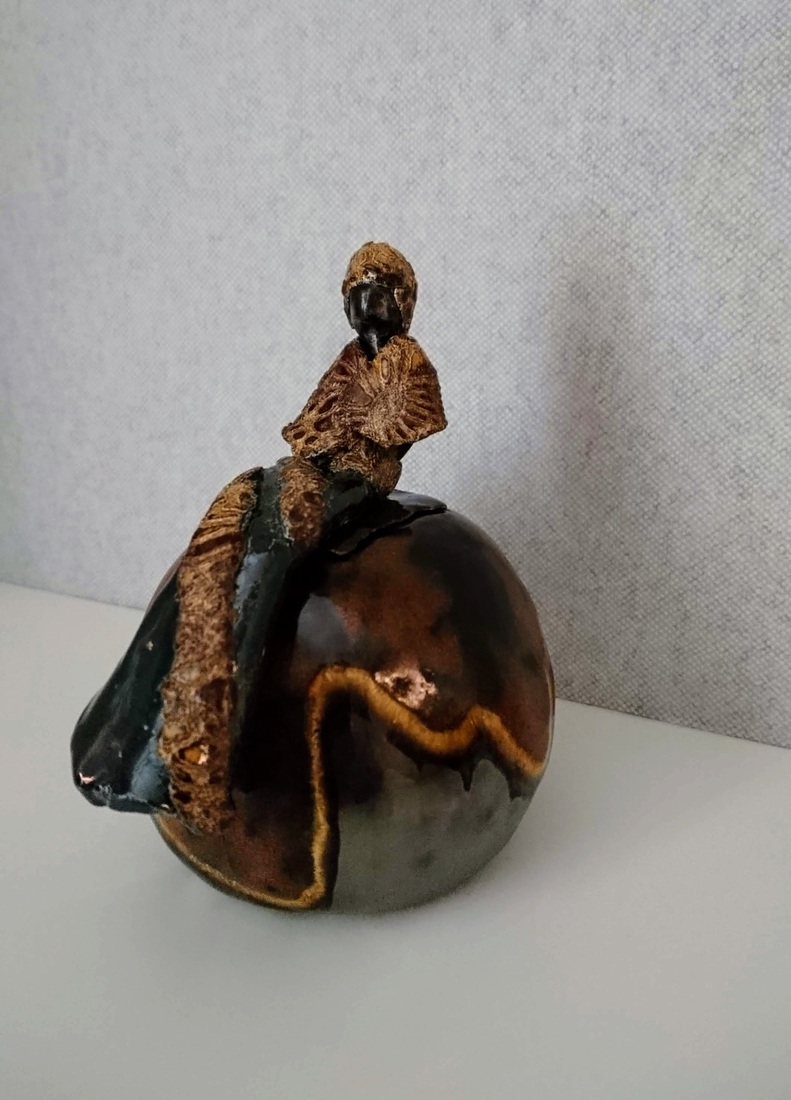 Wit keramiek hoofdje op zwarte sokkel en staafje.