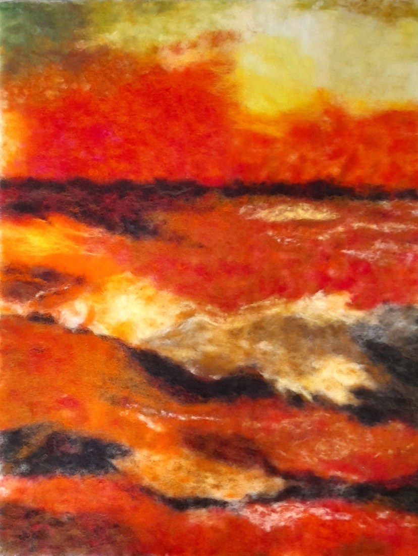 Zeezicht in rood en geel