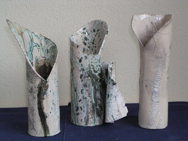 Gedraaide doosjes van keramiek. In combinatie met handvormen.