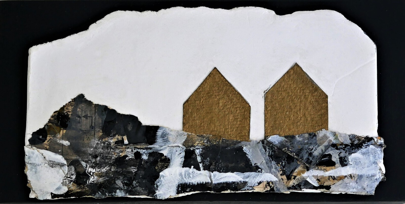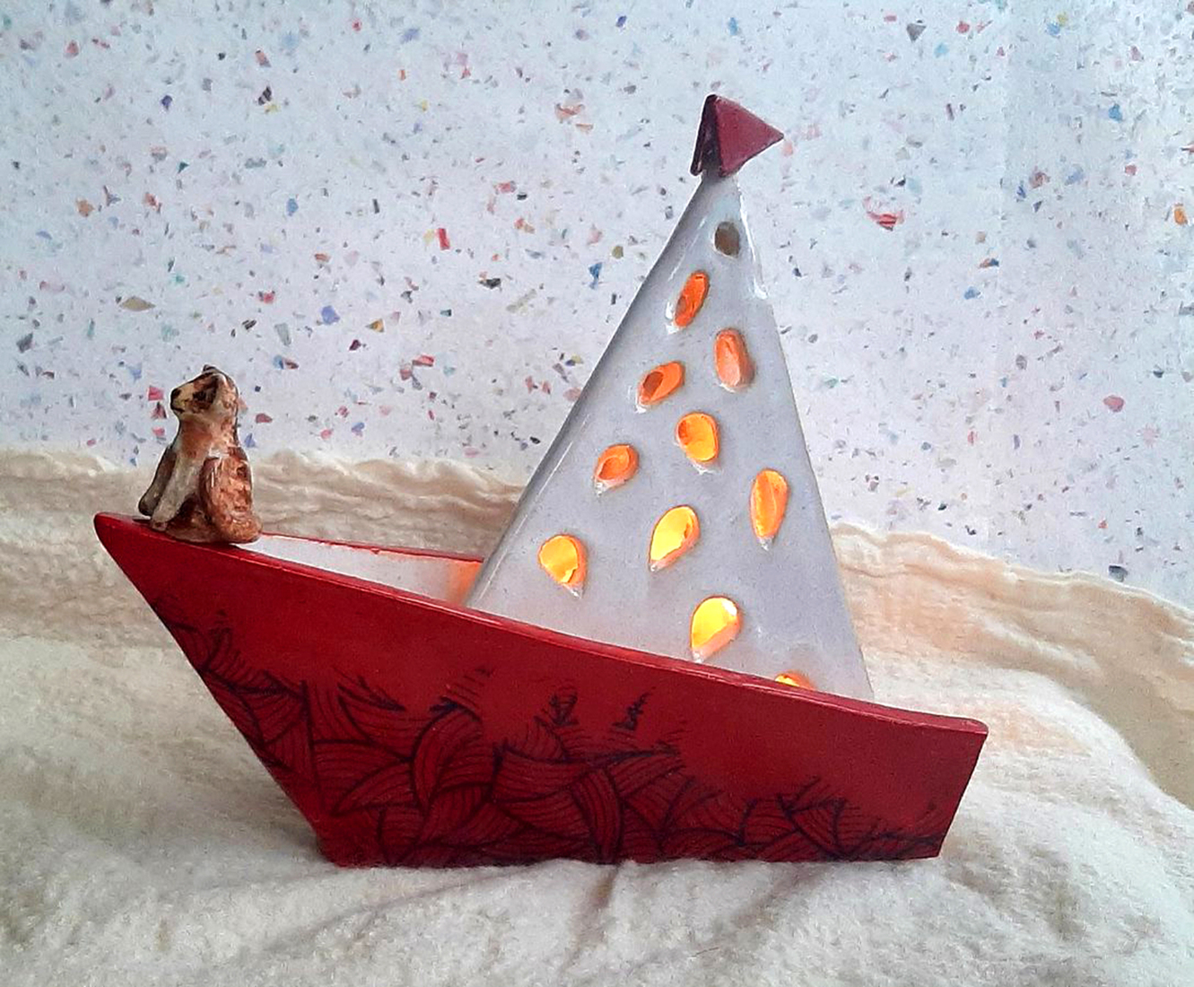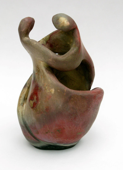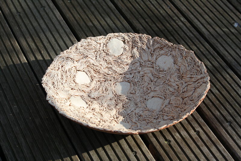 Kreukelvaasje met driftwood flower luchtdrogende klei.K14 — €70,00