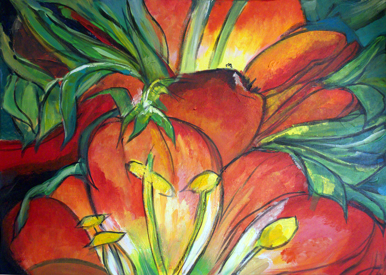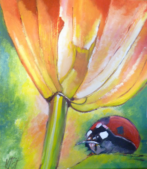 expositie over werken met geschilderde macro's van bloemen en kevers