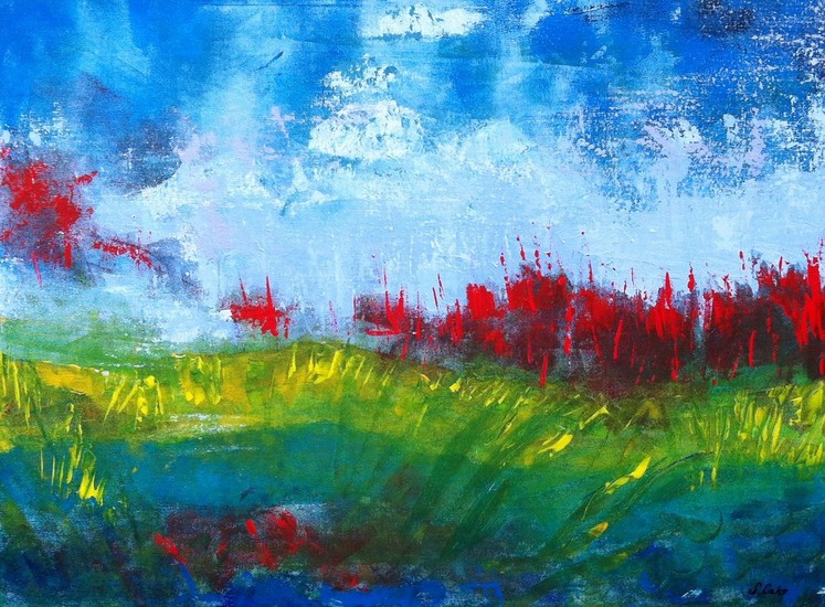 landschap met rode bloemen