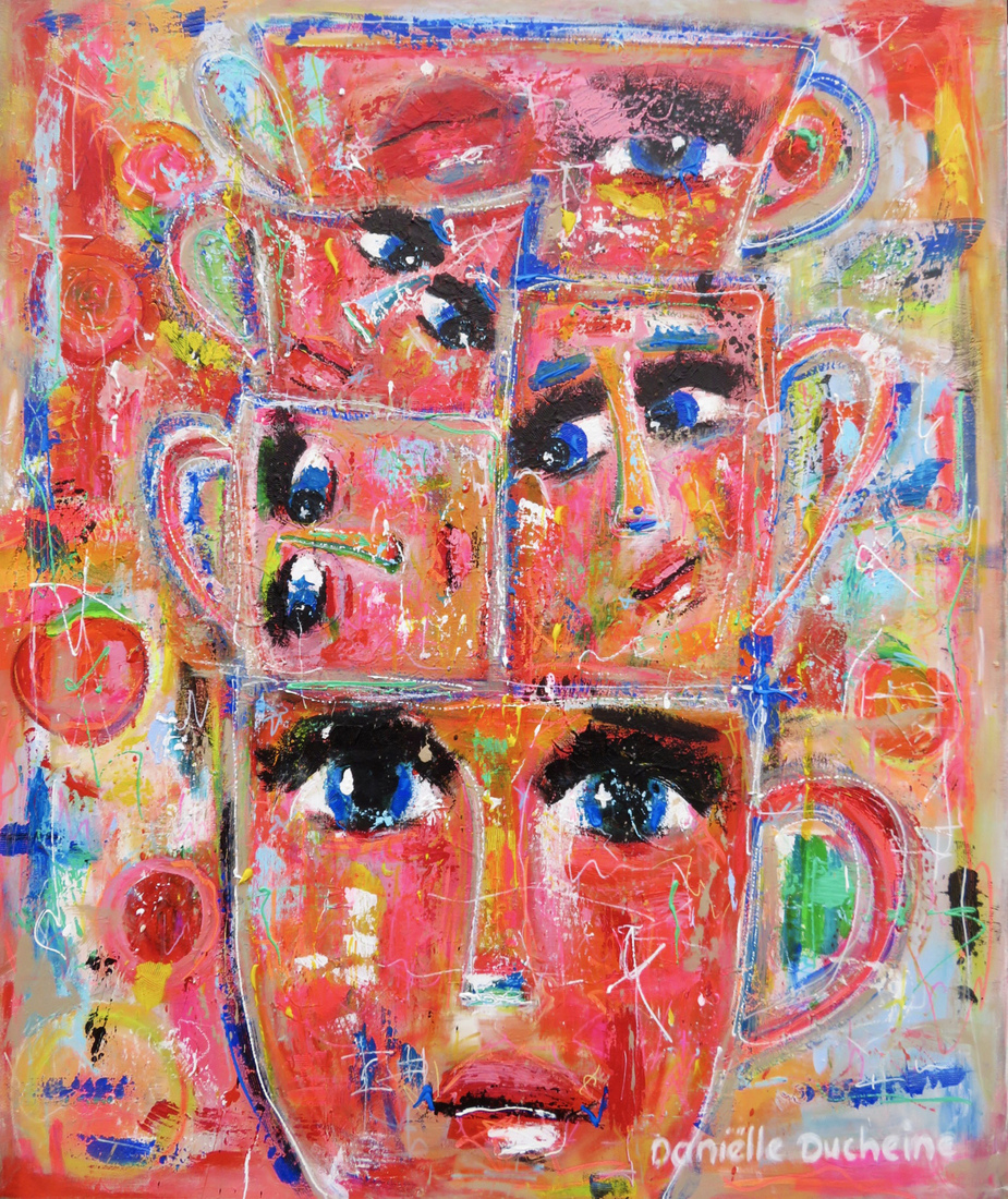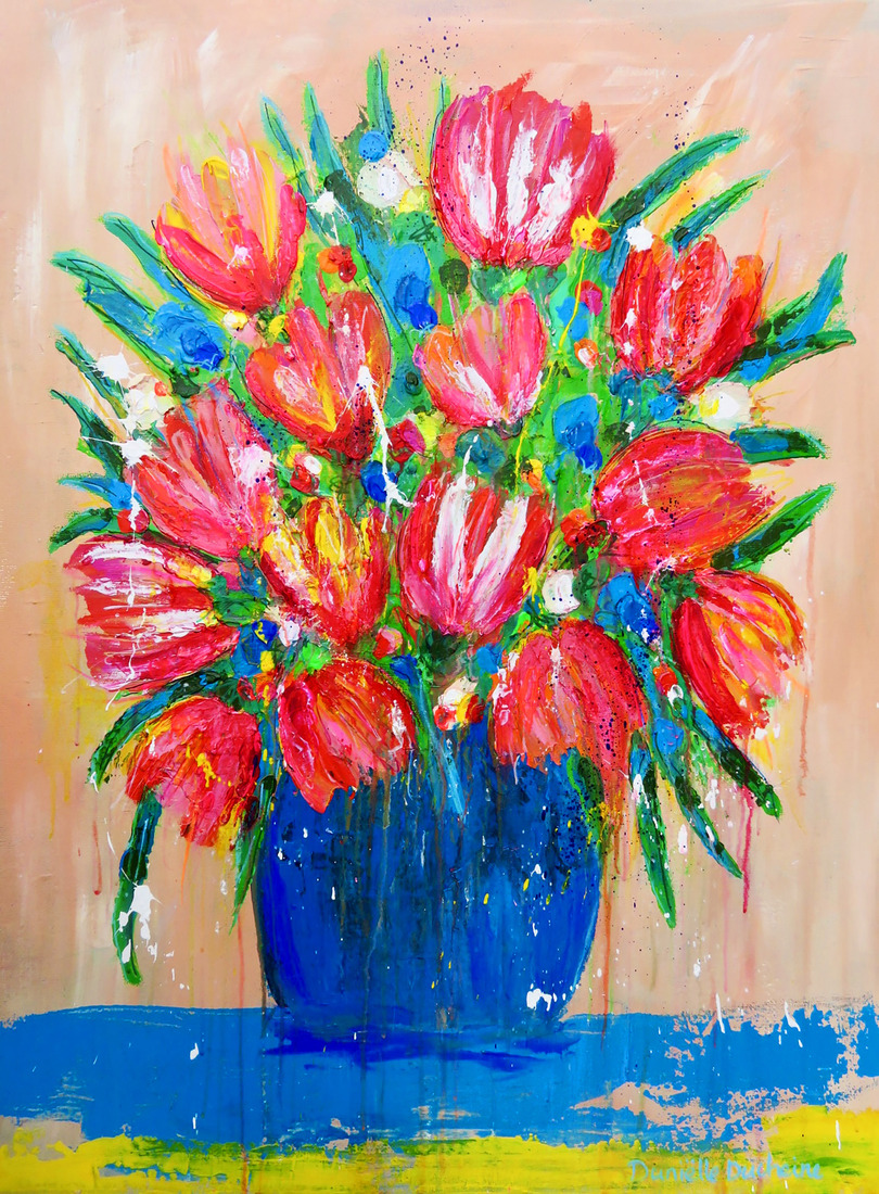 Meer informatieKleurrijke kunst in de vorm van naïeve portretten, knipoog naar de grote meesters in een abstract jasje en bloemen schilderijen.