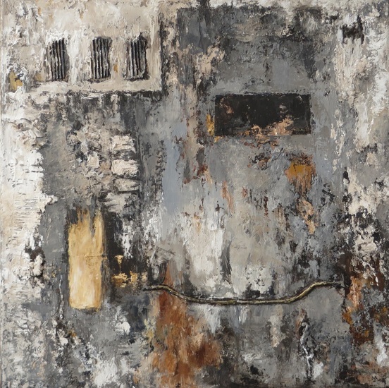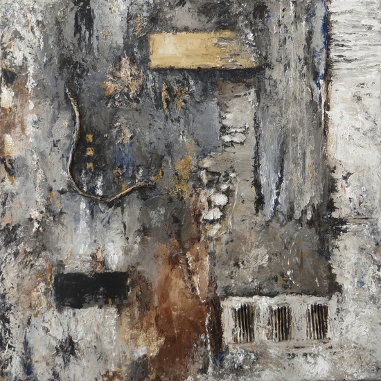 Overzicht van een aantal abstracte werken in acrylverf en gemengde technieken