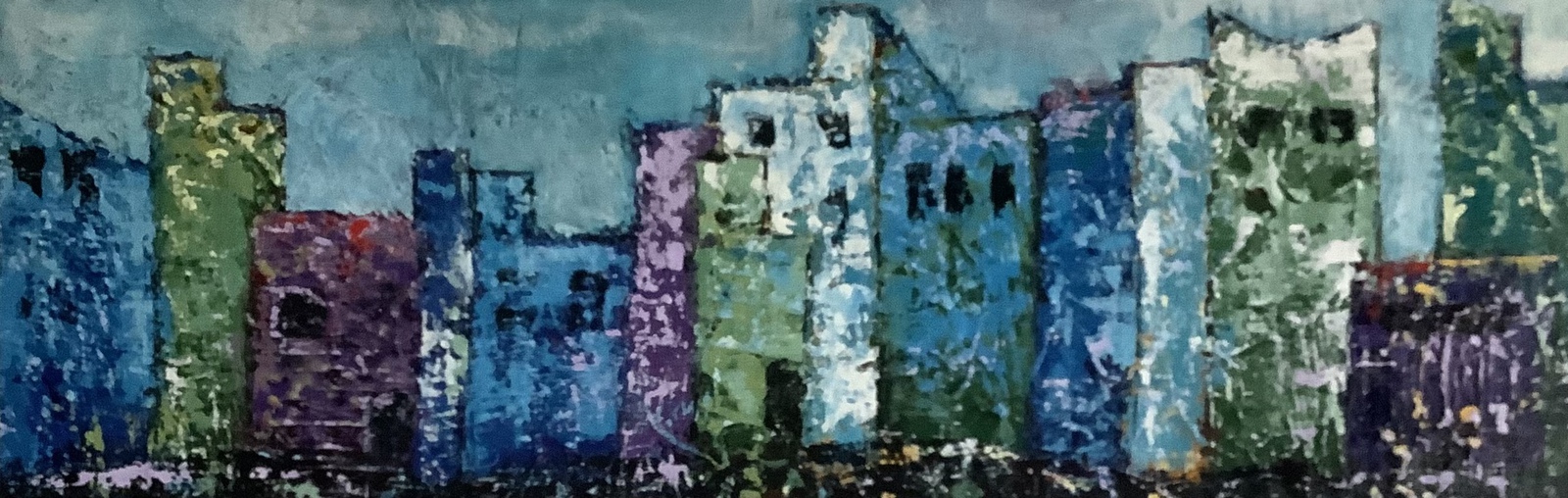 'Blik op de stad 1.' - groot abstract schilderij; niet meer beschikbaar - Fons Heijnsbroek
