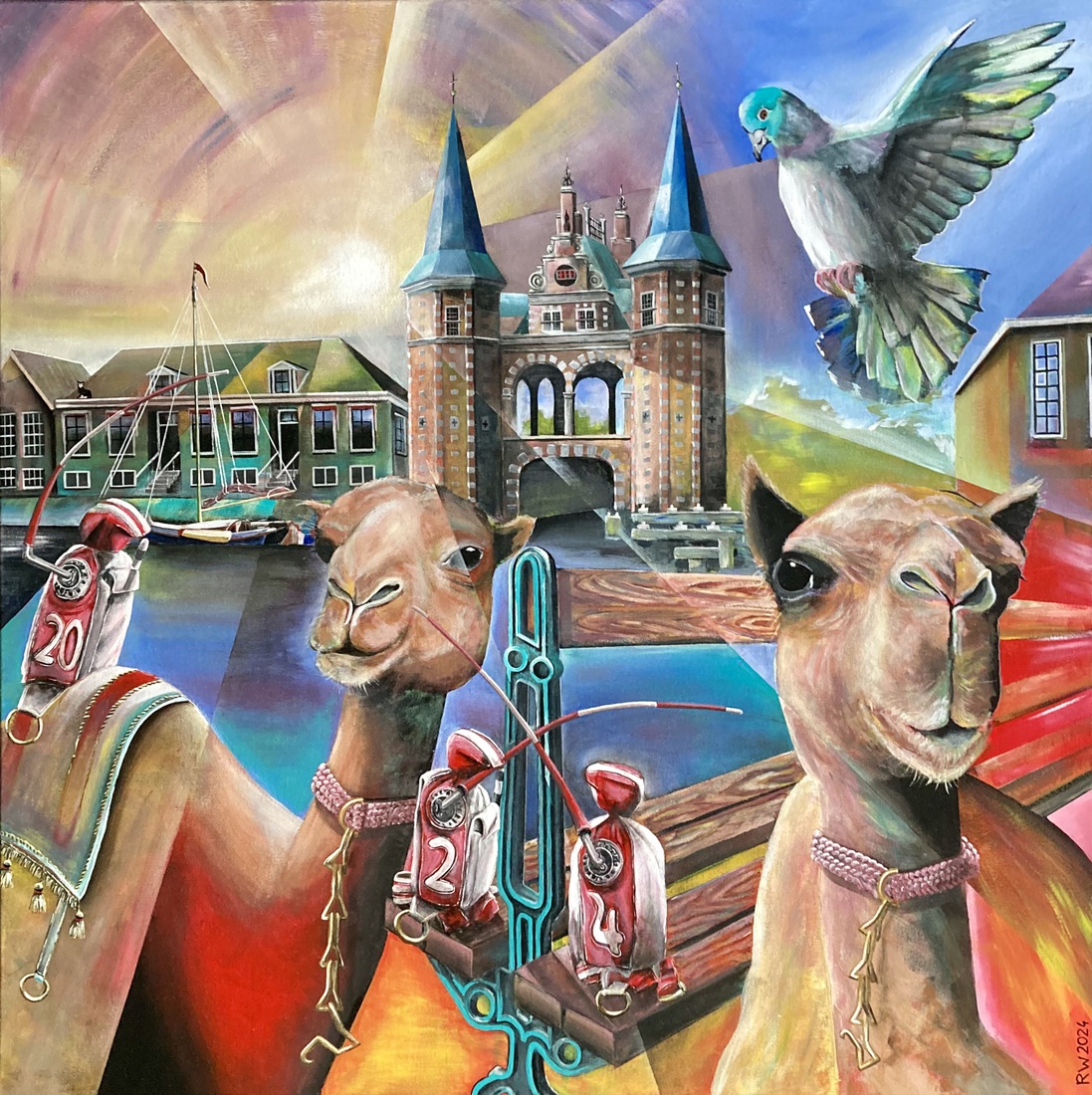 Drie bomen gespiegeld in Parmengarten Frankfurt — €3500,00