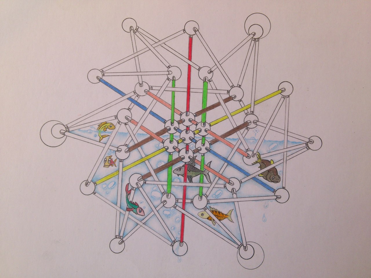 Abstract Figuratief Water Potlood Tekening Effect Inkt Drawing Kleur Lijn Schaduw Aquarium Escher Gedetaileerd Verbeelding Oostindische Future Colour Atoom Symetrie Atomic Line Fine Shadow Pensil