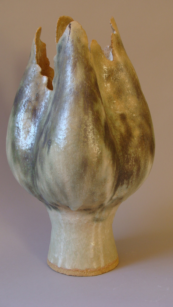 De objecten die ik maak zijn handgevormd. Ze zijn vooral bedoeld om naar te kijken, niet om te gebruiken. Ik hou van de huid van de klei en laat die graag zien. Door niet altijd het hele oppervlak te glazuren blijft het ruige uiterlijk van het materiaal zichtbaar. De laatste jaren heb ik veel met asglazuur gewerkt. Die as is steeds anders van samenstelling, waardoor het glazuur een grote mate van onvoorspelbaarheid heeft. Dat houdt het spannend.