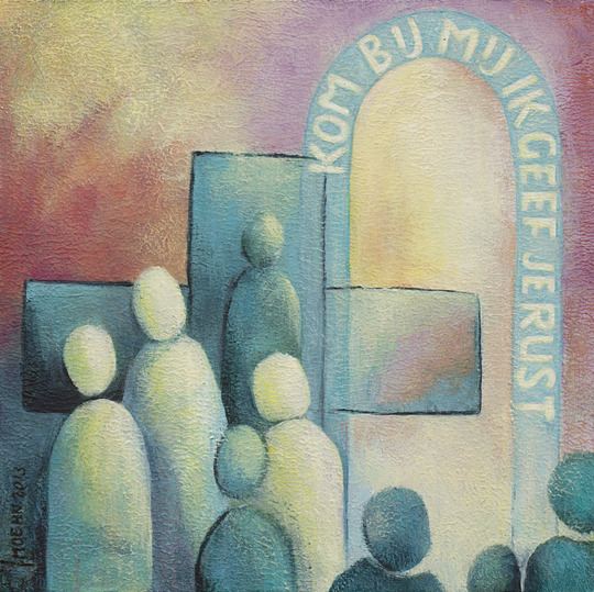 Schilderij Figuren Kom Ik Je Bij Rust Bijbel Poort Mij Miniatuur Geef