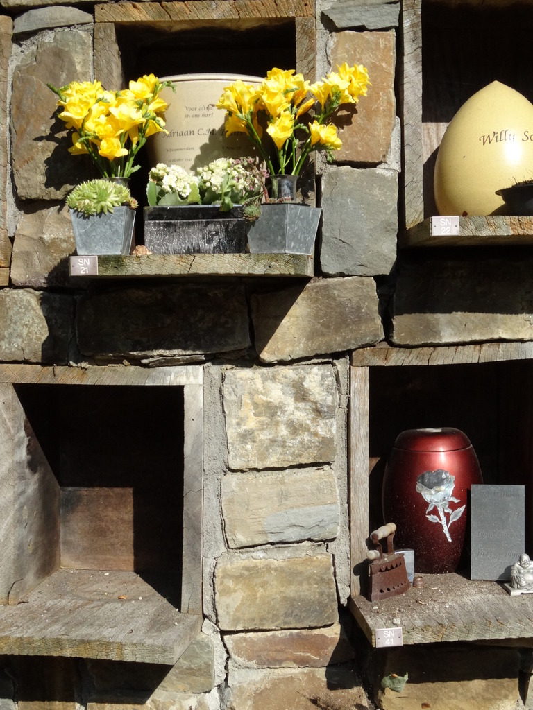 Assemblage van leven en dood (1): Het hele leven is een assemblage / alleen en met elkaar. / Na de dood / wordt aan een graf / of urn / door achterblijvers / een collectie / van memo’s / toegevoegd.