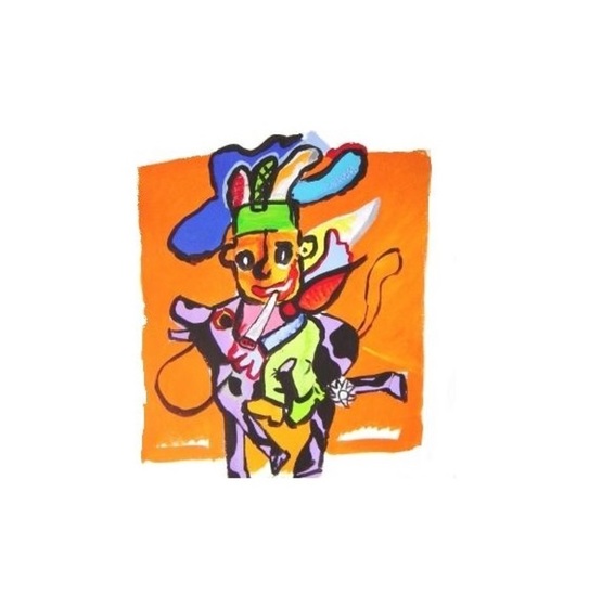 Tja, jong en enthousiast, maar wel al 'ouder' dan zijn maatjes. Kijk maar eens goed! Omdat het werk 'Cowjoggie' (zie afbeelding) erg populair is, zullen er vanaf januari 2015 posters van dit werk bij mij verkrijgbaar zijn.