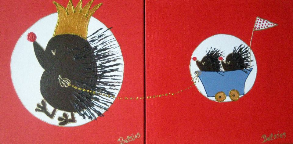 Schilderij Tweeluik Koning Kinderkamer Prikkelbaar Egeltje Bolderwagen