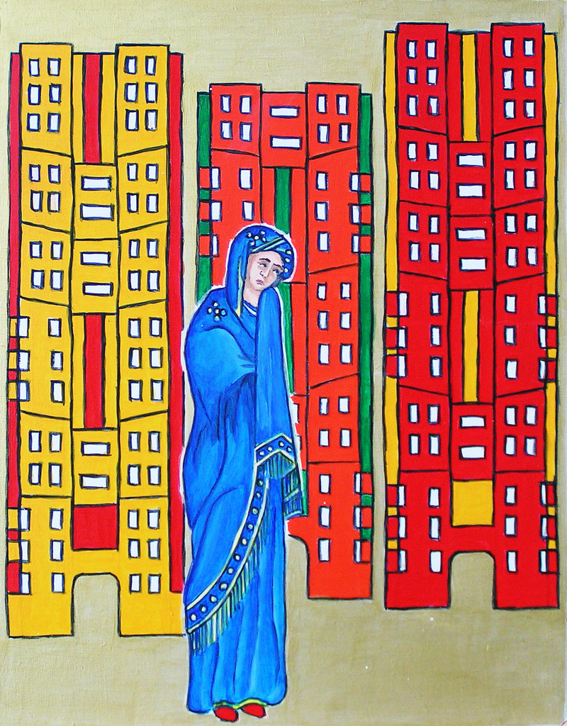 Mijn schilderijen bestaan uit gebouwen en mensen.