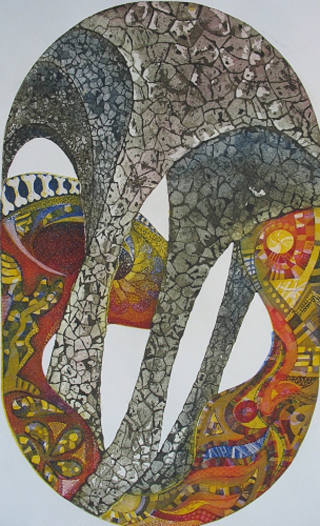 Gaudi en Hundertwasser hebben veel gemeen. Beiden inspireerden mij tot een ode in de vorm van een ets. Bij deze ets van Gaudi vind je elementen van zijn werken in Barcelona. Ze zijn verweven tot een compositie, met organische en mozaïek elementen, met golven en sierlijke wendingen, met kleur en ruwe steen. Oplage: 15