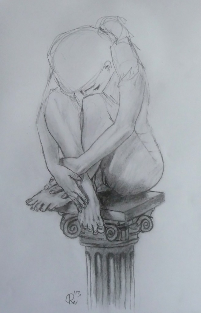 Naakt Vrouw Woman Nude Naked Pedestal Voetstuk Potlood Pencil Ron De Waal Paper Papier Weert Weerter Weertenaar Artist Kunstenaar Kunstemaker