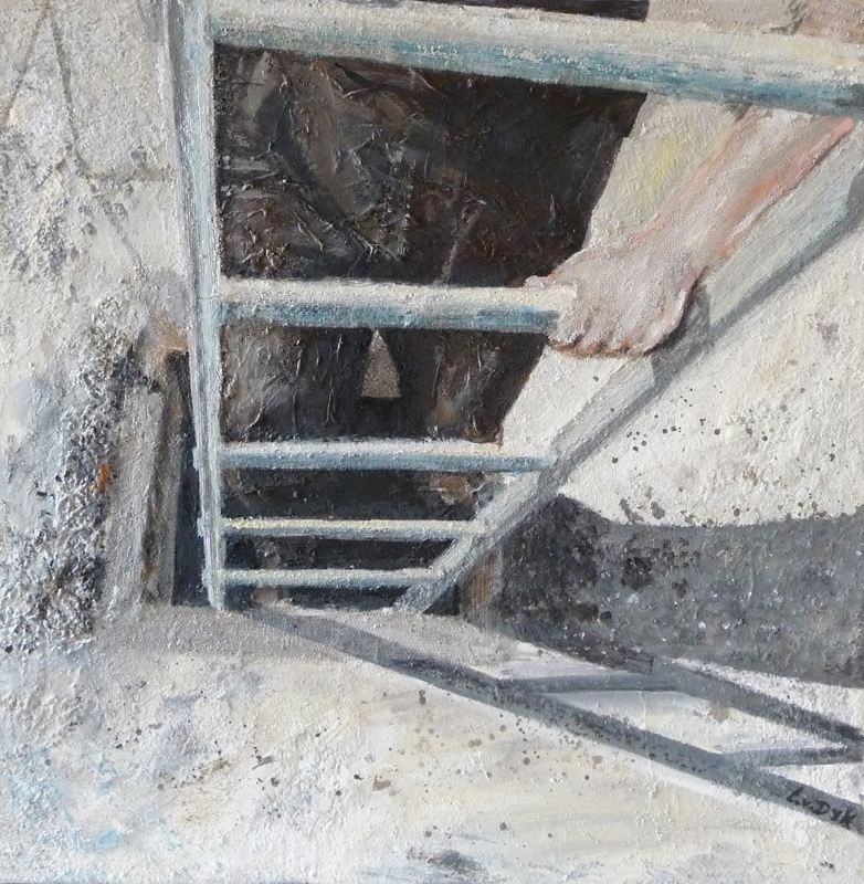 Iets in de buitenwereld intrigeert mij en door deze impressie uit te werken wordt zij blijvend deel van mijn binnenwereld. Laag na laag bouw ik aan de uiteindelijke vorm. Tijdens het werken komt er een stroom van associaties op gang. Het is een constant zoeken naar evenwicht tussen de verf en de andere materialen.