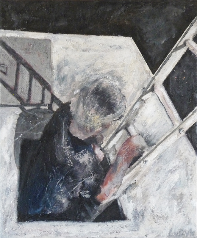 Iets in de buitenwereld intrigeert mij en door deze impressie uit te werken wordt zij blijvend deel van mijn binnenwereld. Laag na laag bouw ik aan de uiteindelijke vorm. Tijdens het werken komt er een stroom van associaties op gang. Het is een constant zoeken naar evenwicht tussen de verf en de andere materialen.