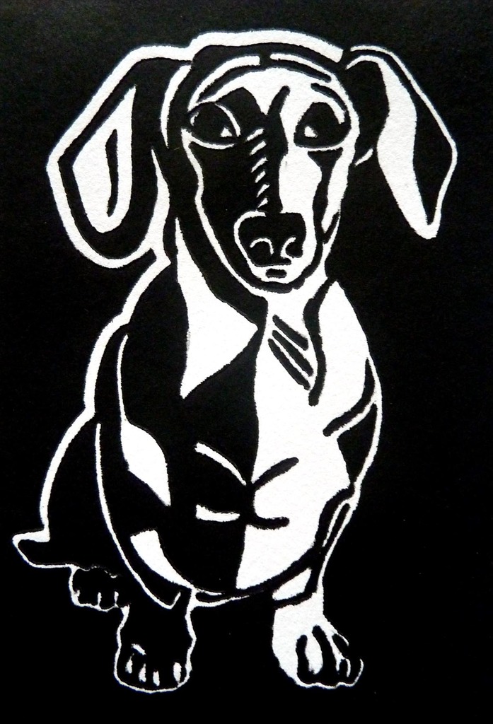 Zwart Dier Grafiek Hond Black Teckel Dog Dachshund Animal Linocut Linoleumsnede