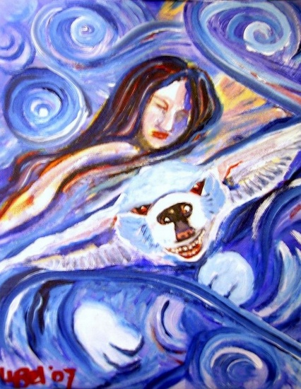 Vrouw Water Dier Acryl Blauw Figuratief Geabstraheerd