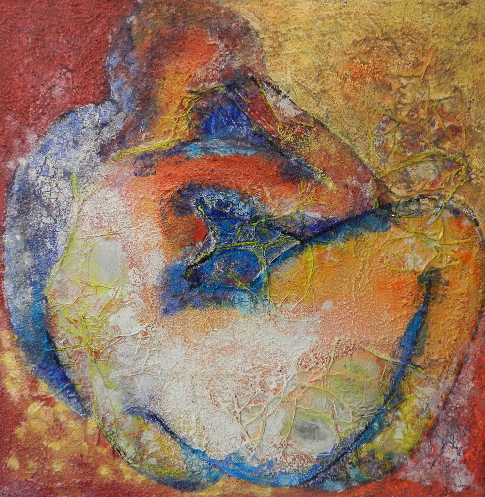 Rust is een toestand van volkomen harmonie, waarbij je volledig jezelf kan zijn. Uitgewerkt in acryl mixed media op canvas.