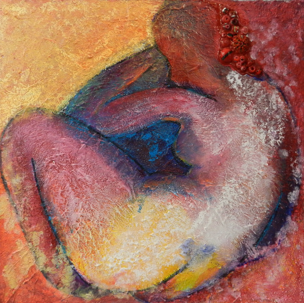 Rust is een toestand van volkomen harmonie, waarbij je volledig jezelf kan zijn. Uitgewerkt in acryl mixed media op canvas.