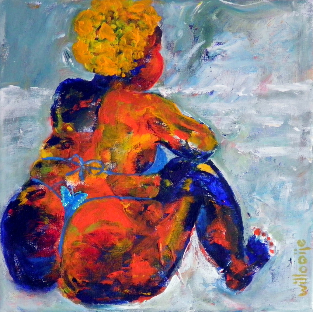 Emoties komen tot uitdrukking in poëtische en sensuele figuren. Vooral atmosfeer en kleur zijn sterke elementen in mijn schilderijen.