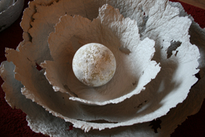 Uit de serie 'Core' Schalen van geschept papier met een natuursteden kern