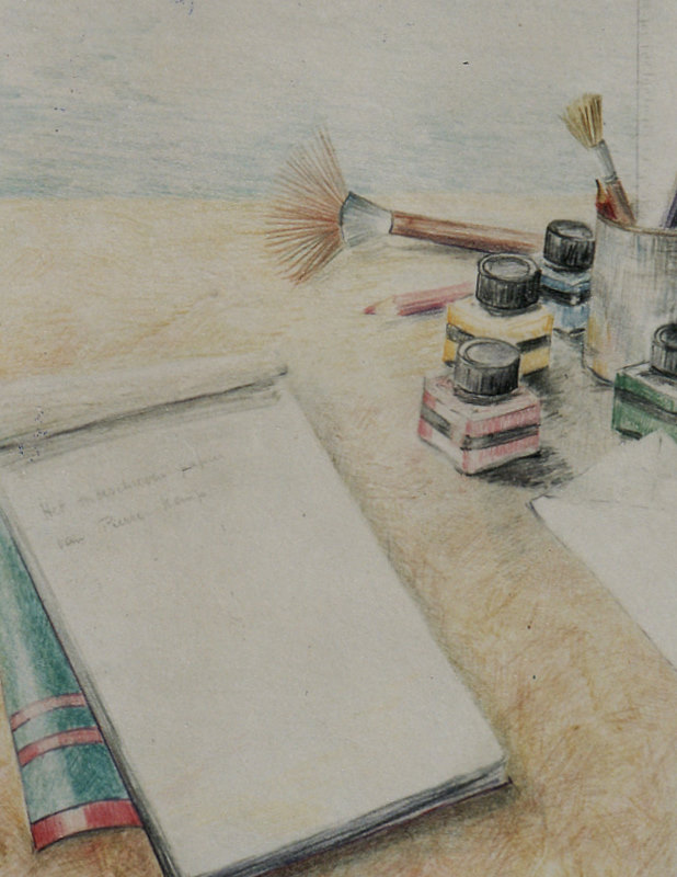 Volgens het gedicht van Pierre Kemp kan er nog veel gebeuren of niet met dit onbeschreven blad. In dit geval door mij met kleurpotlood bewerkt.