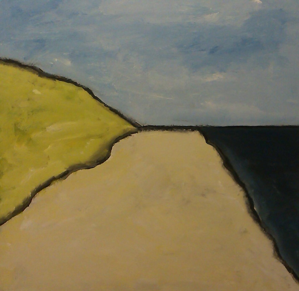 Eenvoudige lijnen ontdekken de vrije ruimte. 82 x 82 cm. VERKOCHT.