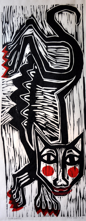 Houtsnede, handmatig gedrukt op Chinees papier. Koninklijke Hoogheid Stoeipoes: de scherpnagelige, trouweloze en eigenzinnige schoonheid.