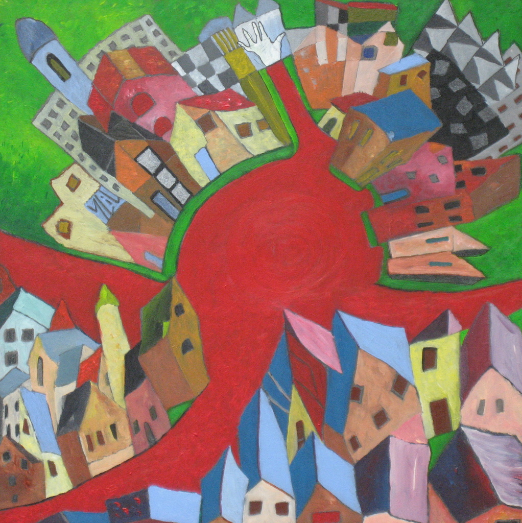 Huizen Acryl Surreeel Rood