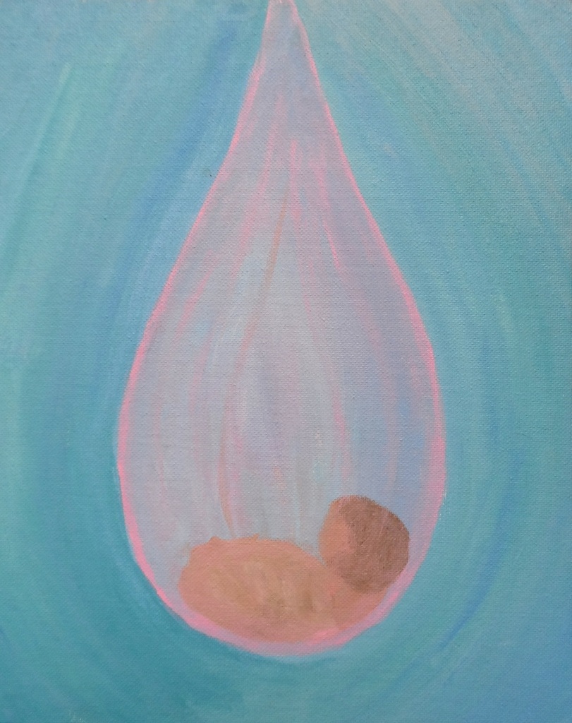 Geborgenheid, veilig in de bescherming van de druppel wordt zij gedragen.