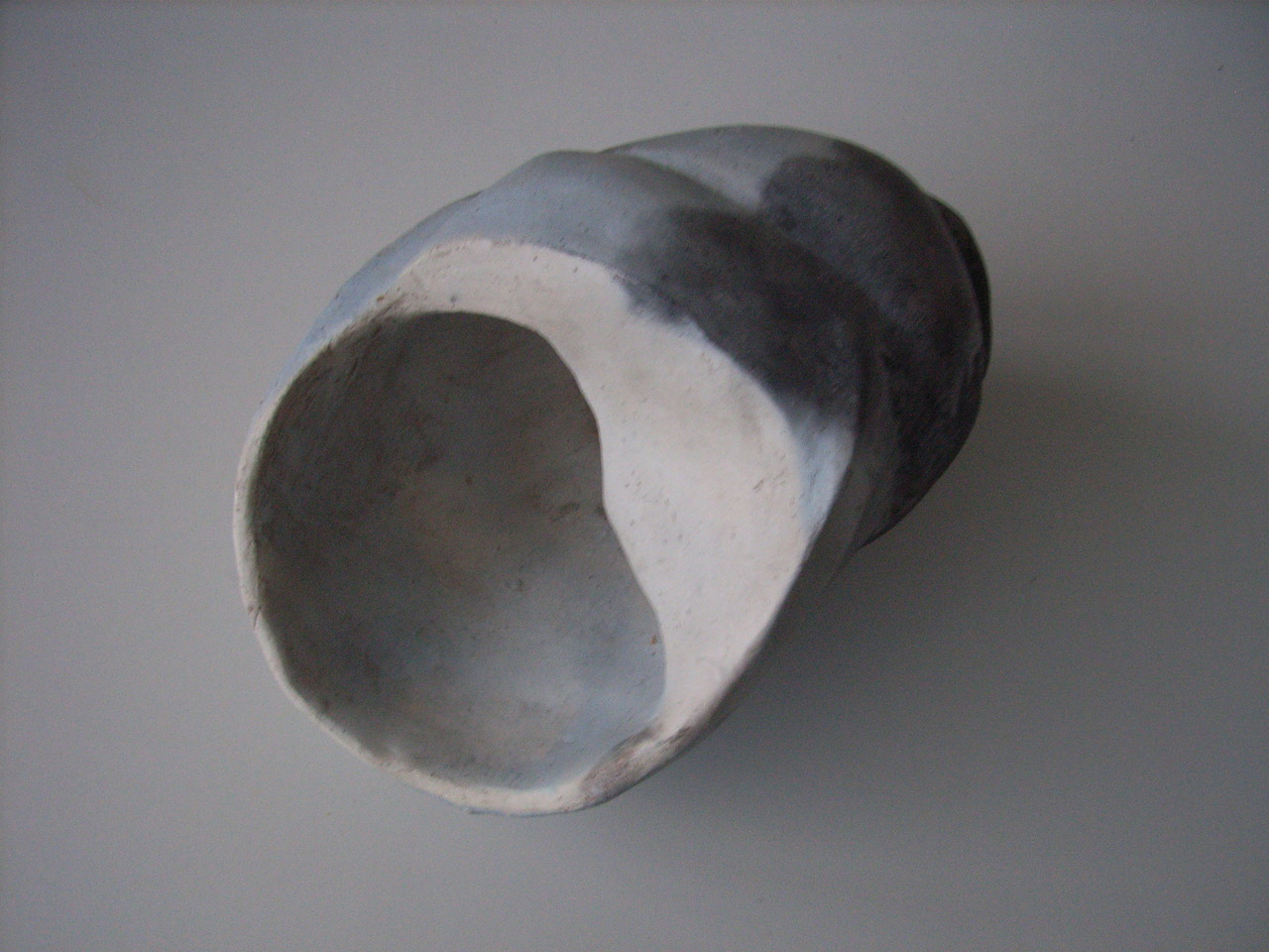 schelp 8, aardewerk, met sulfaten behandeld, in de papieroven gestookt.
