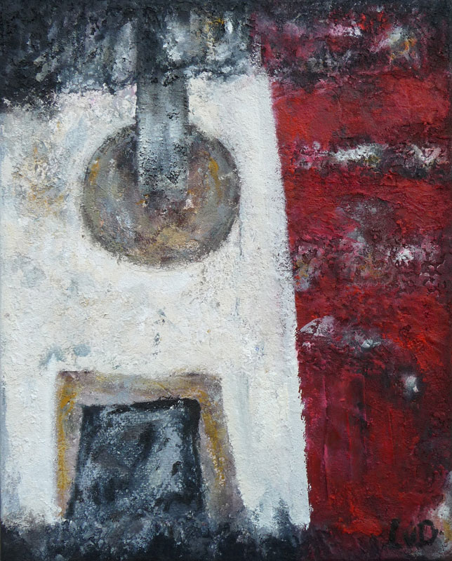 Iets in de buitenwereld intrigeert mij en door deze impressie uit te werken wordt zij blijvend deel van mijn binnenwereld. Laag na laag bouw ik aan de uiteindelijke vorm. Tijdens het werken komt er een stroom van associaties op gang. Het is een constant zoeken naar evenwicht tussen de verf en de andere materialen.