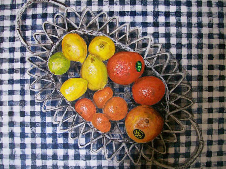 Fruit Schaal Stilleven Tafel Kleed Keukenschilderij Ruit