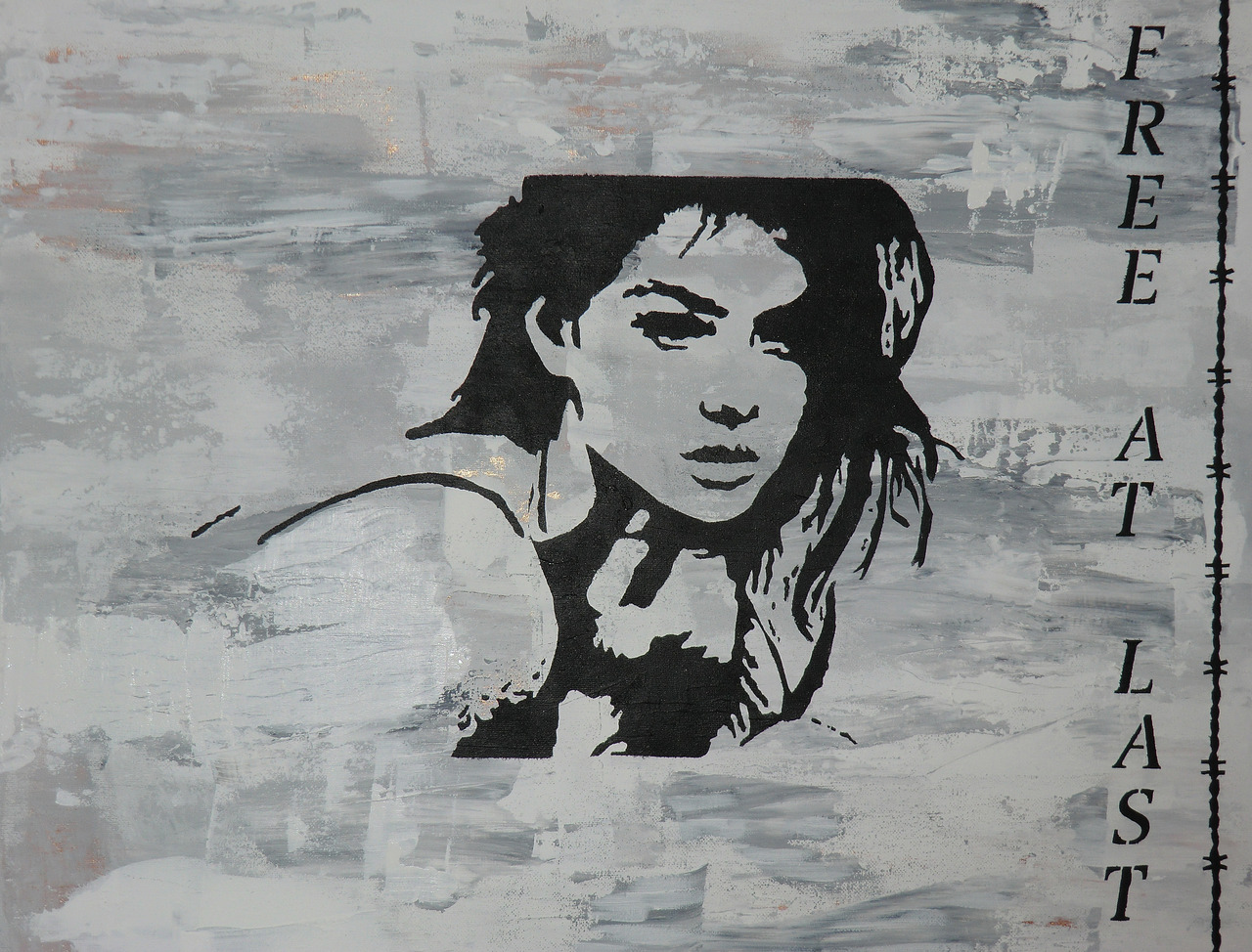 Wit Grijs Zwart Acryl Brons Portret Doek