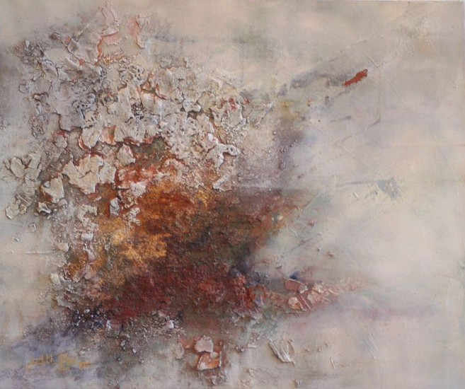 Ik schilder met name abstract, waarbij ik gebruik maak van de meest uiteenlopende materialen: acryl- en olieverf, maar bijvoorbeeld ook gips, koper, zand, klei en verschillende pigmentpoeders.