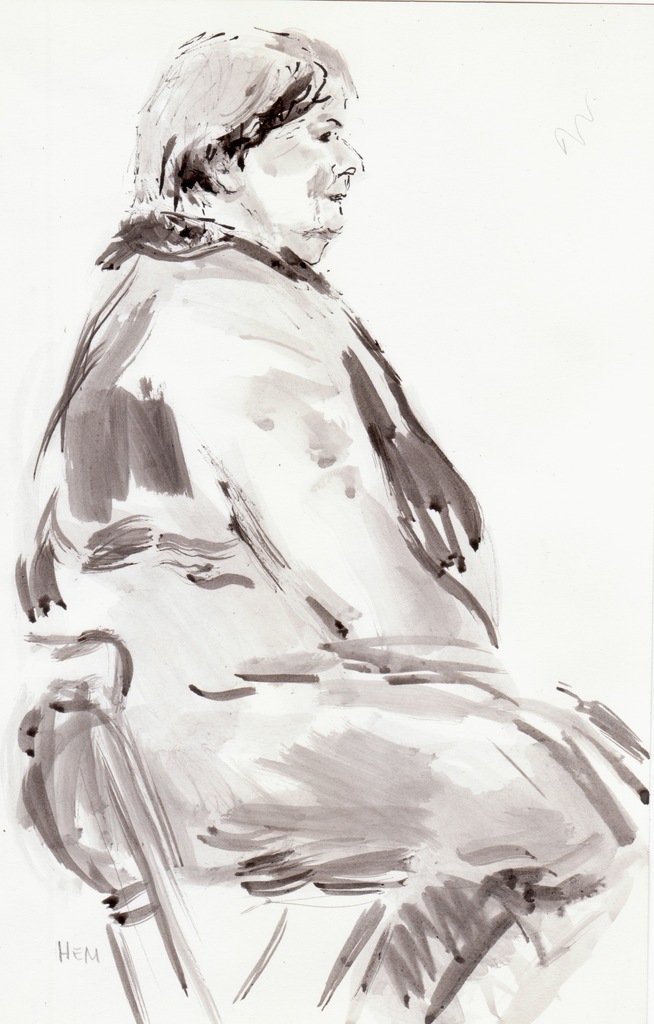 Modeltekening in pen en inkt en gewassen in inkt